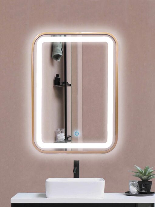 Espejo Decorativo Rectangular con Luz LED Dorado 70cm