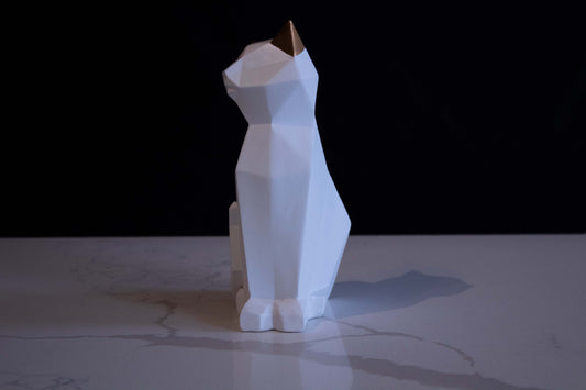 Estatua de Gato Blanco Geométrico
