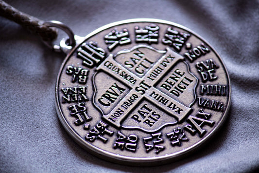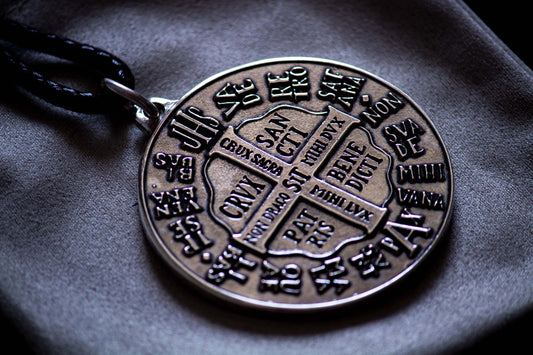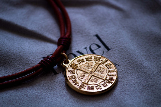 Collar medalla de San Benito (oro 1 micra) con cordón doble