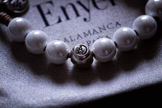 Pulsera Denario con 13 esferas cerámica y 2 esferas baño plata