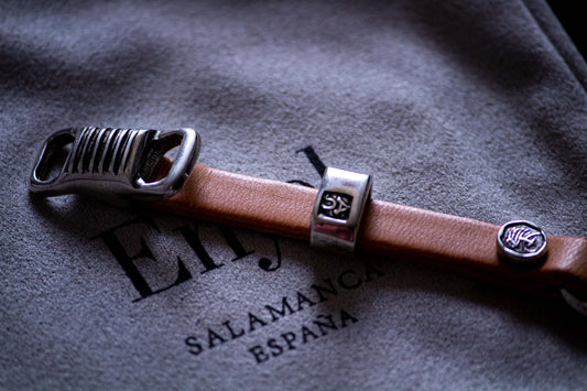 Pulsera de hebilla y piel con una Cruz con Grapa